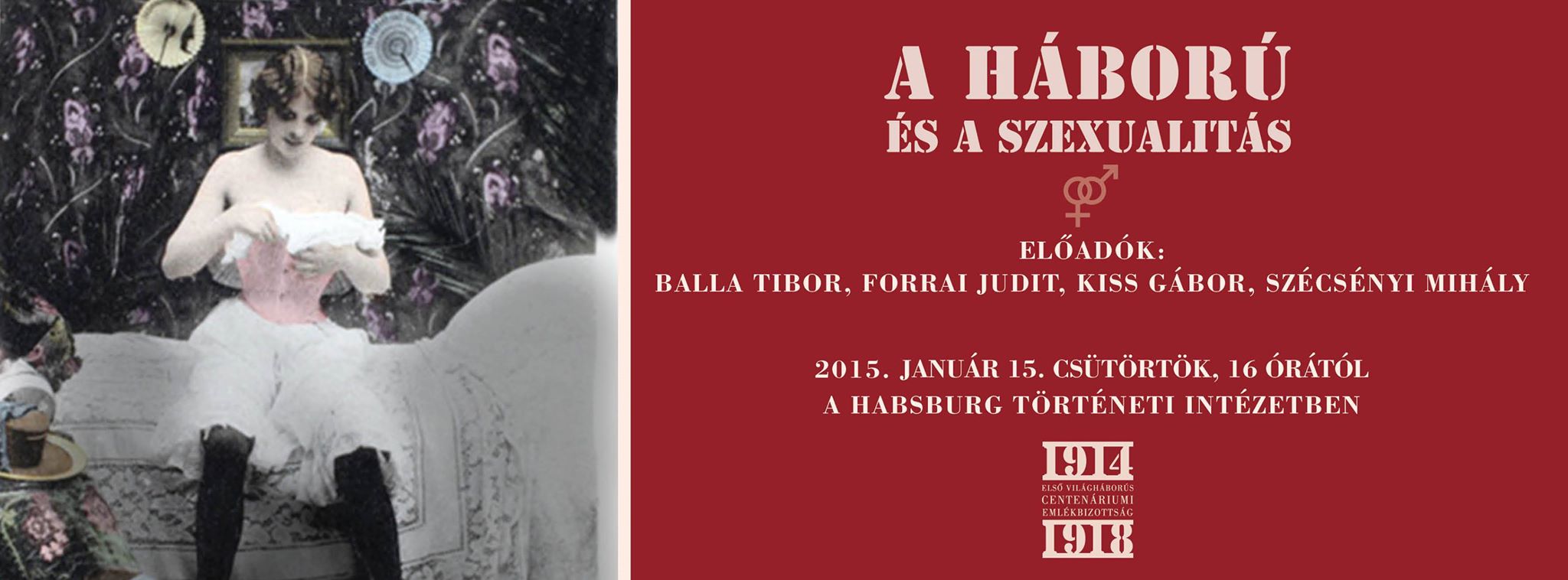 A Habsburg Történeti Intézet, a XX. Század Intézet és az Első Világháborús Centenáriumi Emlékbizottság A háború és a szexualitás című kerekasztal-beszélgetése az eddigiektől teljesen eltérő nézőpontból ismertette azokat a változásokat, amelyeket a több évig elhúzódó küzdelem hozott a korszak szexuális életébe. A Nagy Háborúban minden korábbinál nagyobb tömegben és szervezettebben kerültek férfiak milliói a frontra, és ezzel párhuzamosan nagy tömegű nő maradt partner nélkül. Balla Tibor, a Hadtörténeti Intézet osztályvezetőjének előadása a tábori bordélyok világába nyújtott betekintést. Forrai Judit, a Semmelweis Egyetem Népegészségtani Intézetének orvostörténésze elsősorban orvosi szempontból közelítette meg témát. Kiss Gábor, a Hadtörténeti Intézet és Múzeum Bécsi Kirendeltségének főlevéltárosa arról beszélt, hogy a háború során a történelem addigi legnagyobb szabású szexuális felvilágosító kampánya vette kezdetét, illetve az állami szabályozás és speciális orvostanfolyamok eredményei évről évre számokban is tapasztalható javulást eredményeztek a frontokon.