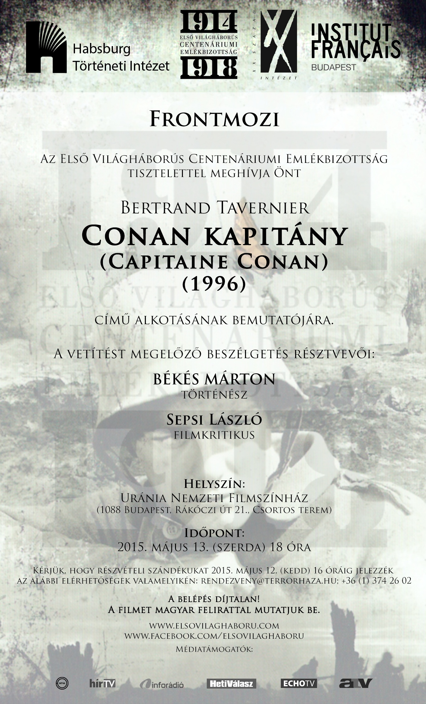 A Frontmozi rendezvénysorozat keretében minden hónap második szerdáján elsővilágháborús filmeket mutat be az Urániában az Első Világháborús Centenáriumi Emlékbizottság, a XX. Század Intézet és a Habsburg Történeti Intézet. 2015. május 13-án Bertrand Tavernier Conan kapitány címűfilmjét láthatta a nagyközönség.
